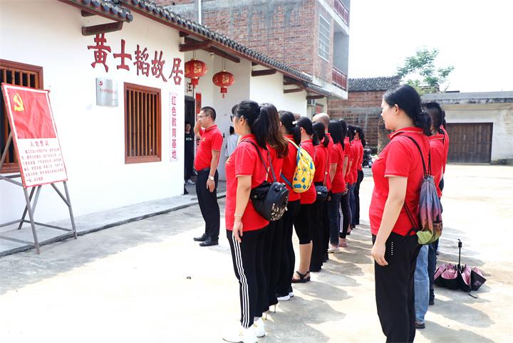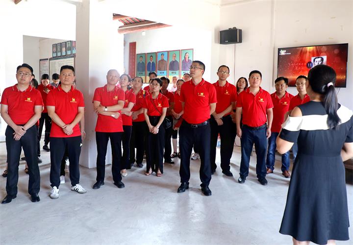 在黃士韜故居前,公司黨支部副書記蘭乾雄帶領黨員重溫入黨誓詞。全體黨員面向黨旗,緊握右拳,莊嚴宣誓。