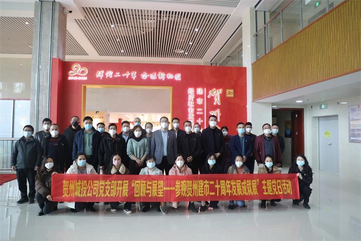 為深入學習貫徹黨的二十大精神,進一步激發黨員干部及公司員工投身高水平建設廣西東融先行示范區的干勁和熱情,1月10日,城投公司黨支部組織黨員和干部職工前往賀州市民服務中心開展“回顧與展望——參觀賀州建市二十周年發展成就展”主題黨日活動,公司黨支部書記、董事長蘭乾雄帶領公司領導班子成員、黨支部全體黨員、發展對象、入黨積極分子40余名干部職工參加活動。