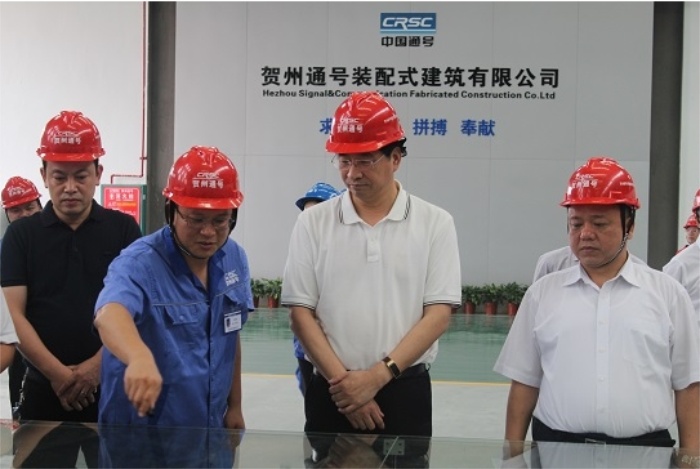 6月12日上午,廣西壯族自治區住建廳廳長周家斌一行到賀州通號裝配式建筑有限公司開展調研。
